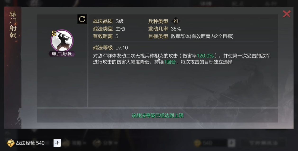 为大营选择战法时,核心思路是追求输出的最大化与稳定性。通常大营武将应配备强力的主动或追击类攻击战法。对于依赖策略攻击的武将,深谋远虑、楚歌四起、十面埋伏、风声鹤唳等是经典搭配,通过持续的谋略伤害压制对手。一些高伤害率的主动战法,如河内世泽、绝水遏敌、焰焚箕轸等,表现尤为突出。在选择时战法效果可能存在冲突,例如同为主动战法且均可附加妖术效果的技能同时使用会产生冲突,应尽量避免以确保策略协同。